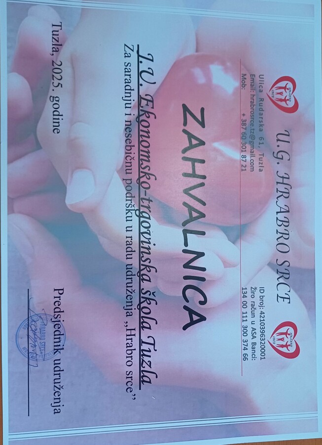 Naši učenici i zaposlenici škole rado učestvuju u brojnim humanitarnim akcijama i na taj način daju doprinos zajednici. Jedna od takvih aktivnosti bila je i kupovina čestitki od Udruženja „Hrabro srce“.