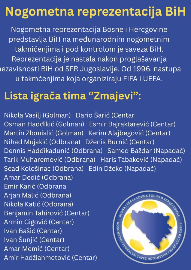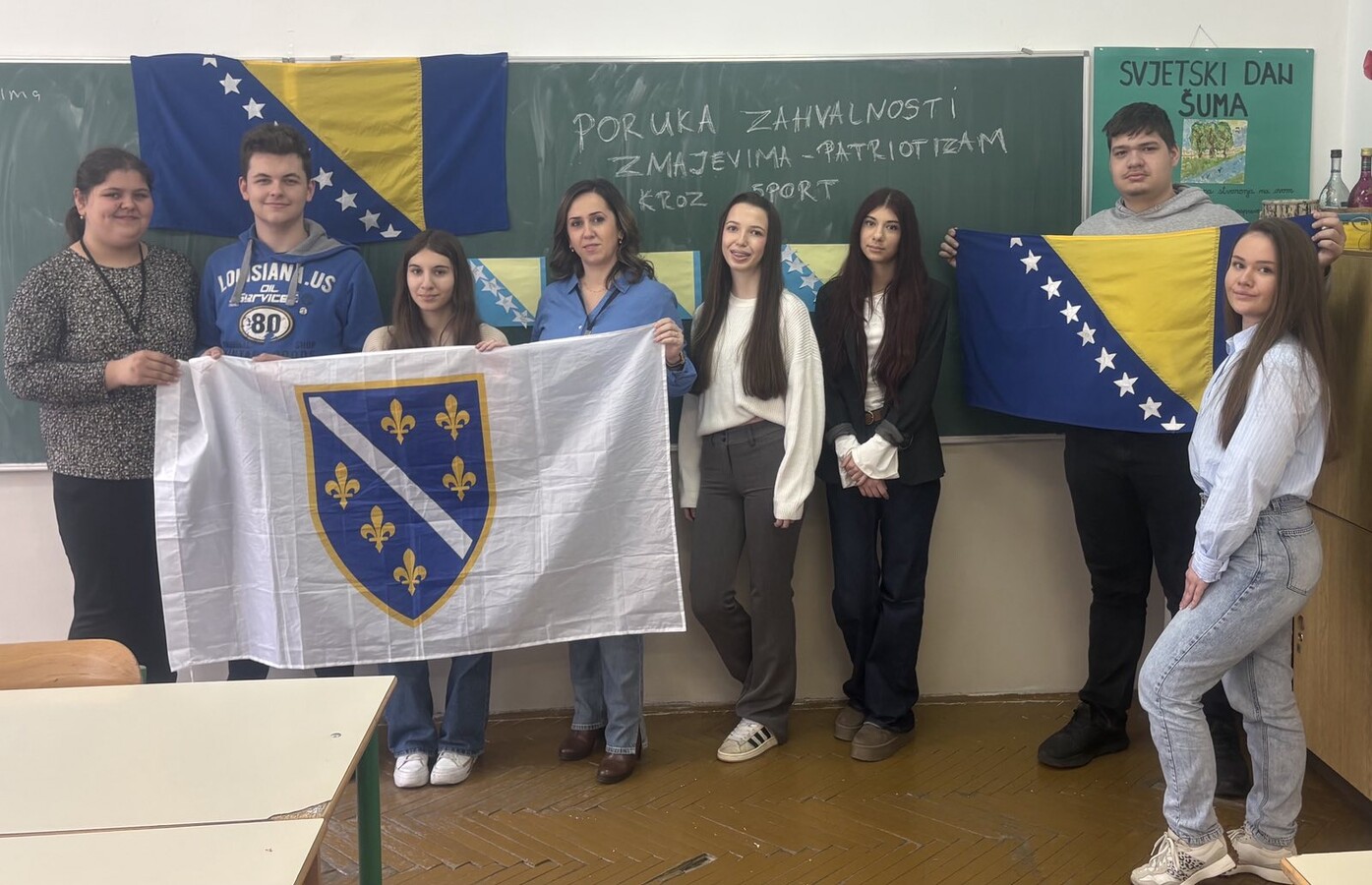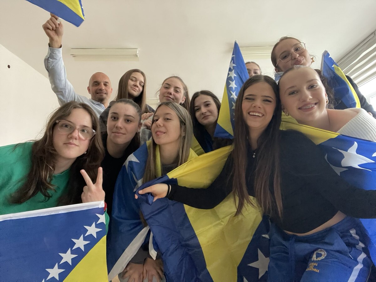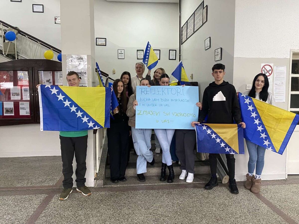 Historijski sportski podvig naše reprezentacije i plasman na Svjetsko prvenstvo donijeli su neopisivu radost u srce svakog našeg učenika i profesora. Danas smo se, pridružujući se svim osnovnim i srednjim školama, okupili kako bismo zajednički i dostojanstveno ukazali na značaj ovog veličanstvenog uspjeha koji je ujedinio cijelu domovinu. Iako je slavlje počelo spontano odmah nakon pobjede, današnjim aktivnostima pod nazivom „Poruka zahvalnosti Zmajevima“ željeli smo na organizovan način poslati podršku našim herojima.
