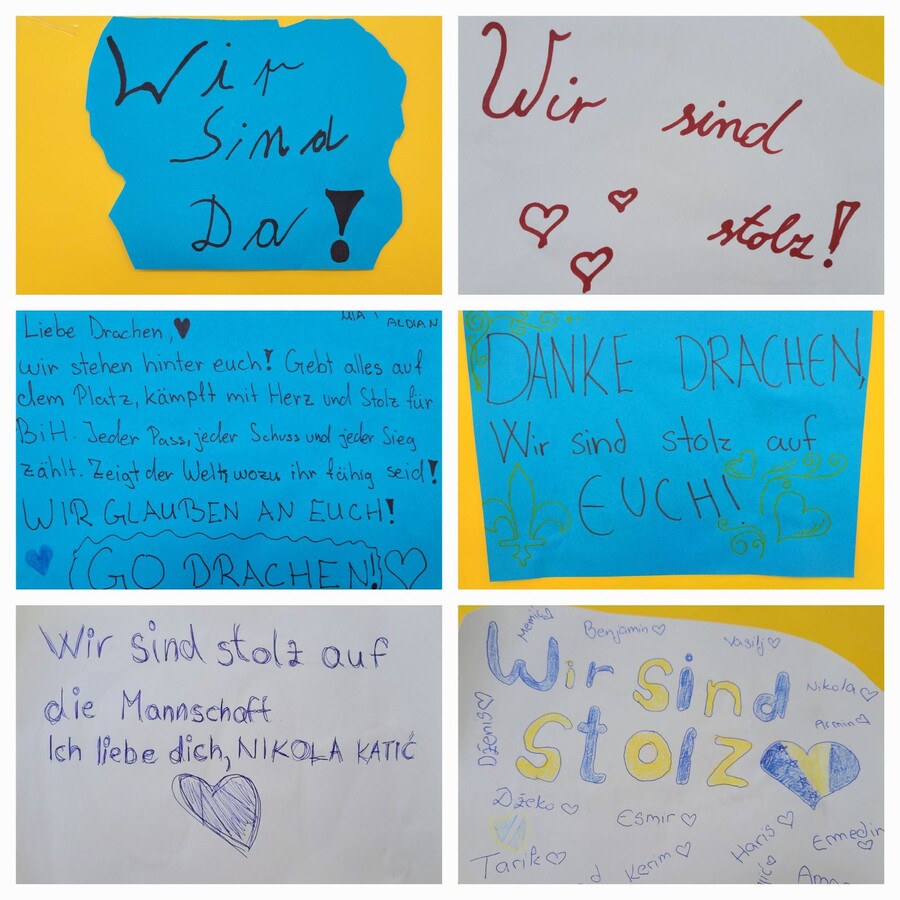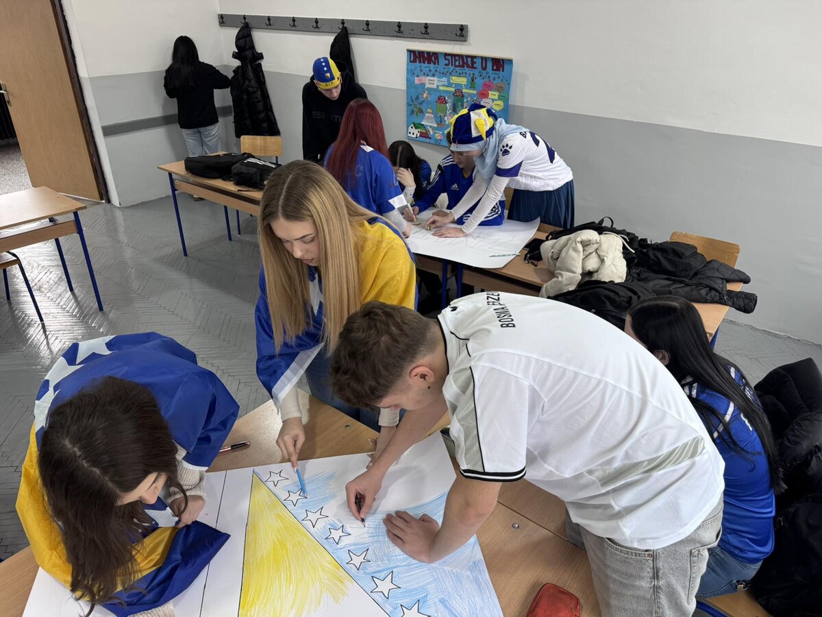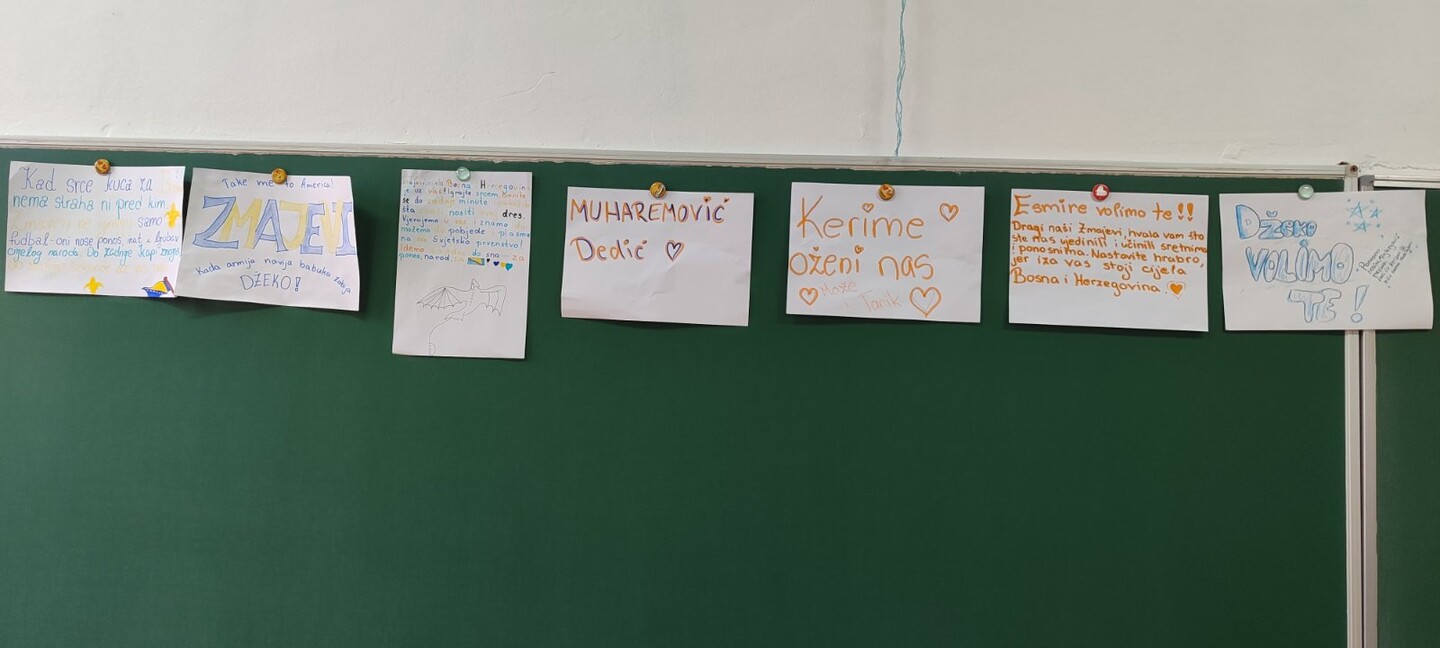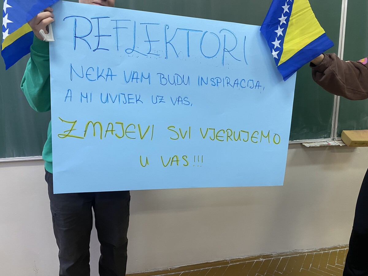 Naši hodnici i učionice danas su bili ispunjeni ponosom, bojama naše zastave i iskrenim dječijim osmjesima. Ovaj sportski uspjeh za nas nije samo pobjeda na terenu, već i snažna lekcija o trudu, odricanju i vjeri u ciljeve, što su vrijednosti koje svakodnevno njegujemo u našim učionicama. Naši učenici su svojim kreativnim porukama i zajedničkim fotografijama pokazali da su upravo oni najvjerniji navijači koji prepoznaju prave uzore u našim reprezentativcima.