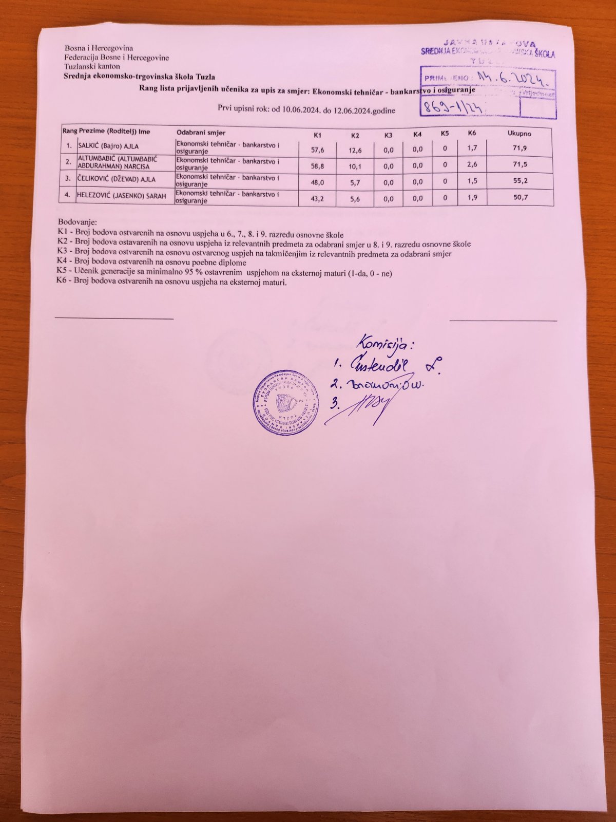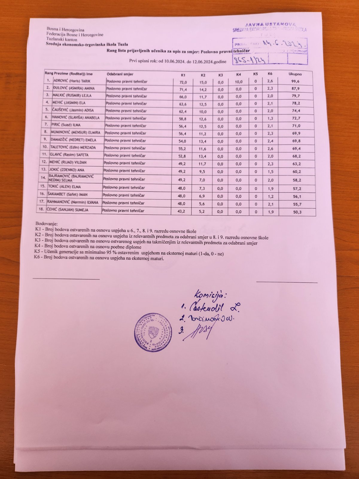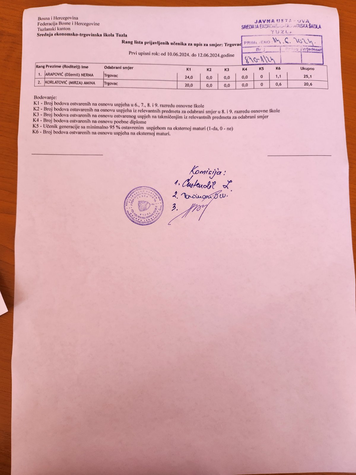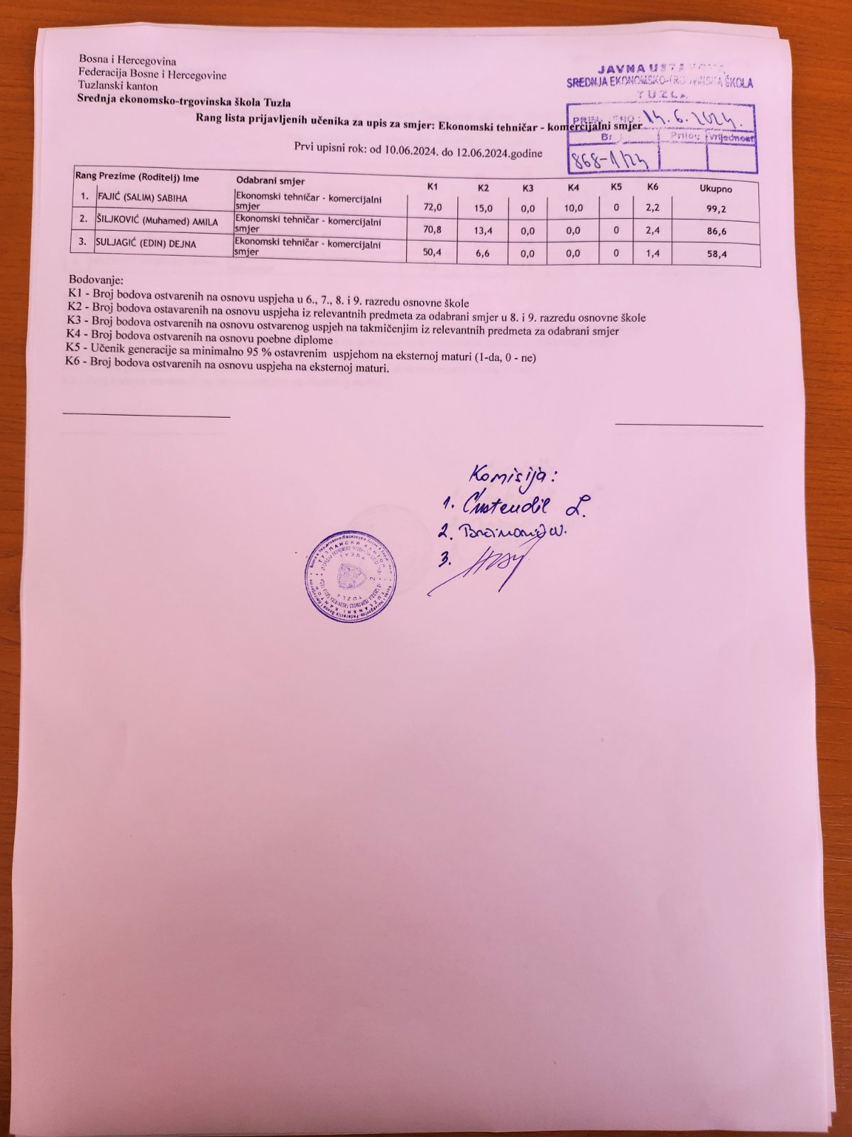 Rang lista učenika nakon prvog upisnog roka nalazi se u prilogu.