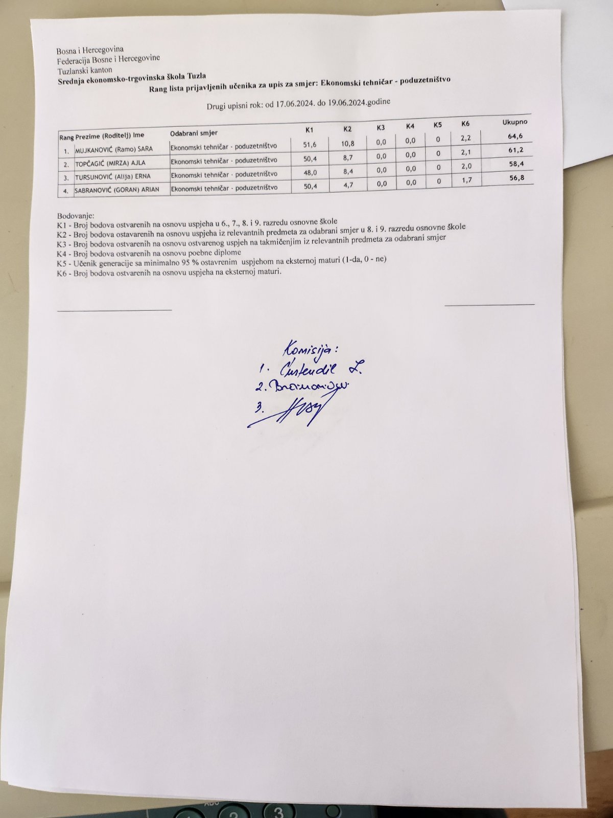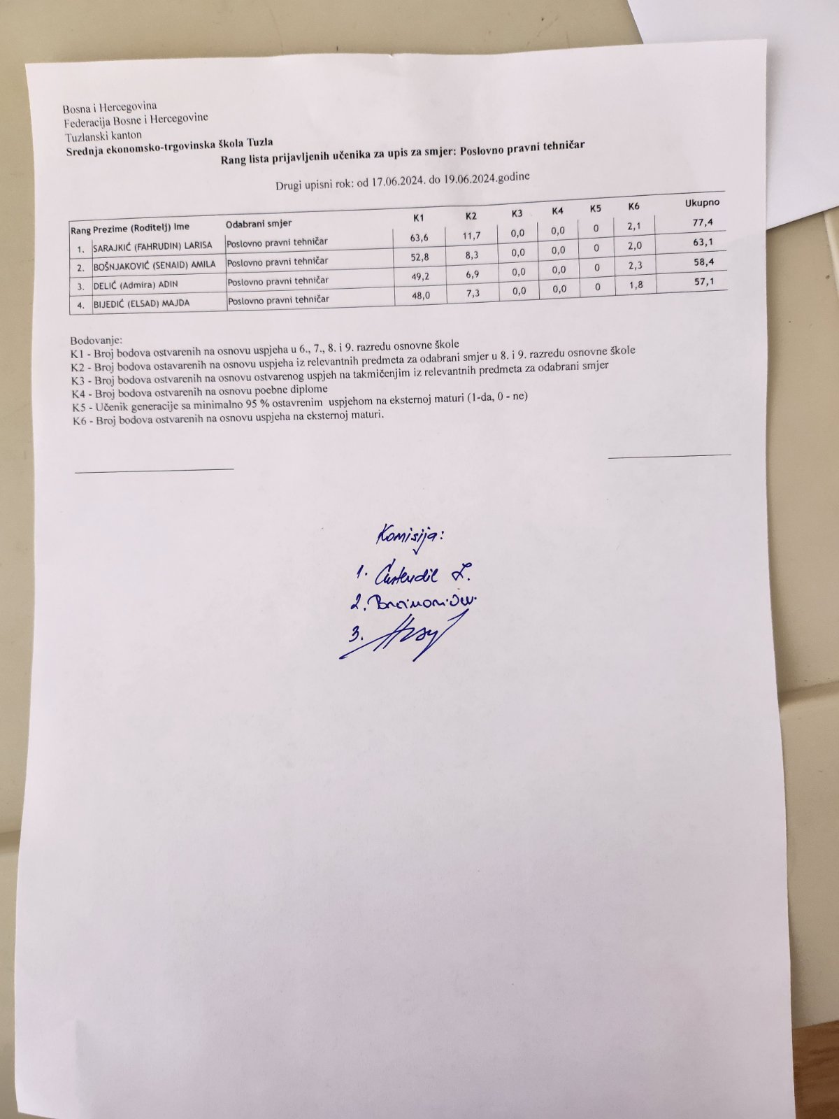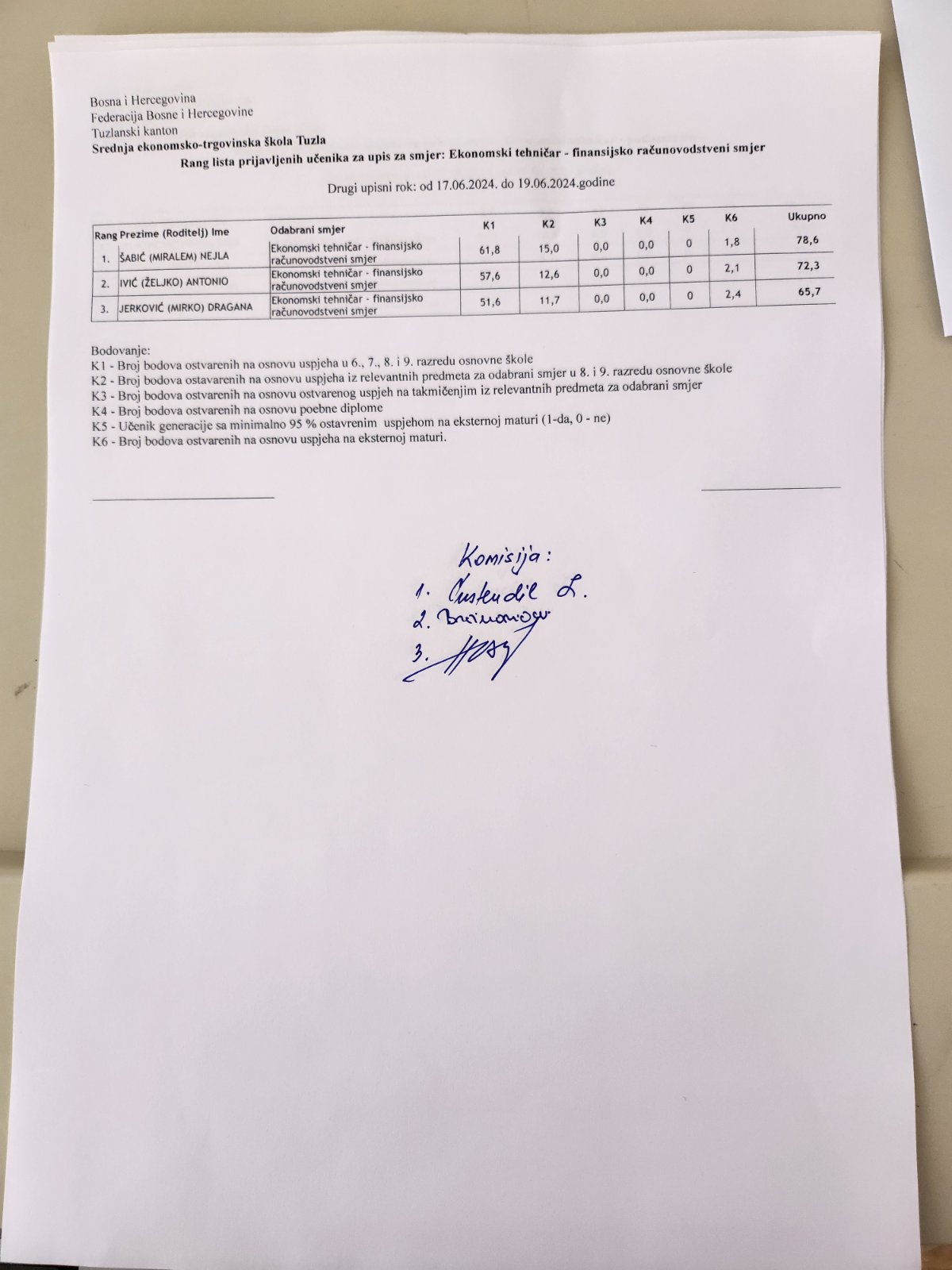 Rang lista učenika, nakon završenog drugog upisnog, nalazi se u prilogu.
